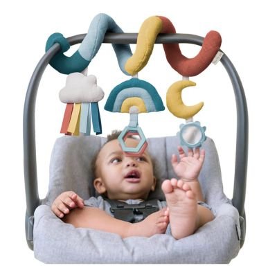 - Itzy Ritzy’s spiral car seat and stroller activity toy features 3 interactive hanging toys that will keep your baby entertained during car rides, walks and other adventures